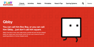 The Friends section of the website contains profiles for various Nintendo characters, including Qbby: